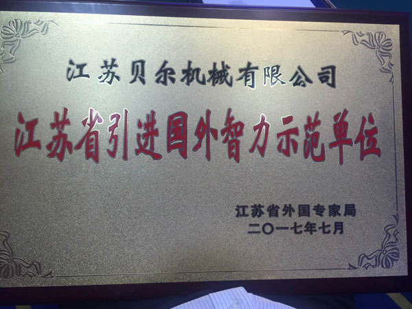 江蘇貝爾機械喜獲“江蘇省引進(jìn)國外智力示范單位”