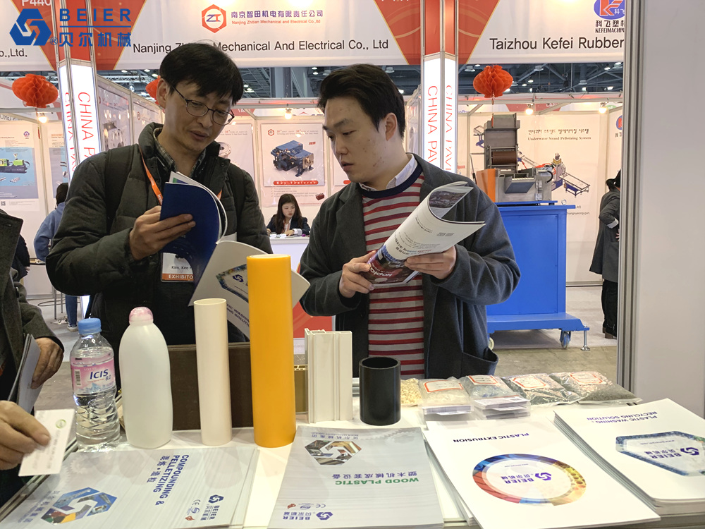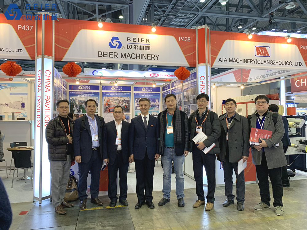 剛開展,中國塑料加工工業協會理事長朱文瑋、副理事長/秘書長 王占杰 就來到了中國展區,為中國參展企業加油。貝爾機械集團常務副總裁劉峰向協會領導介紹了貝爾的業務范圍,技術動態,市場發展等情況。一早就專程趕來的貝爾韓國客戶也說明了貝爾機械在韓國以及亞太市場的知名度。