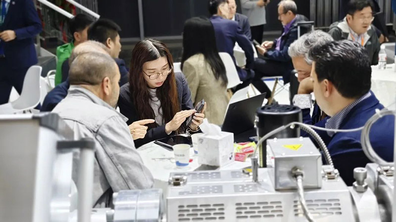在展位現場,隨處可見前來參觀交流的專業觀眾,有的是咨詢集團產品,有的是咨詢的集團業務。洽談區已經不能滿足大家的熱情,展臺內,展機旁,都是大家相談甚歡的身影。