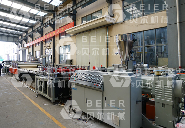 我公司研制生產的PVC木塑發泡板材生產線,所生產的制品一一塑木發泡板集中了木材和塑料的優點,不僅有天然的外觀且克服了天然木材的不足之處,具有同木材相類似的良好加工性能,使用木工工具即可完成,且握釘力明顯優于普通木質材料;具有與硬木相當的抗壓、抗沖擊等物理機械性能,并且其耐用性明顯優于普通木質材料;塑木材料及其產品,可抗強酸堿、耐水、耐腐蝕,并且不繁殖細菌,不易被蟲蛀、不長真菌;還可以抗老化、防靜電、阻燃。