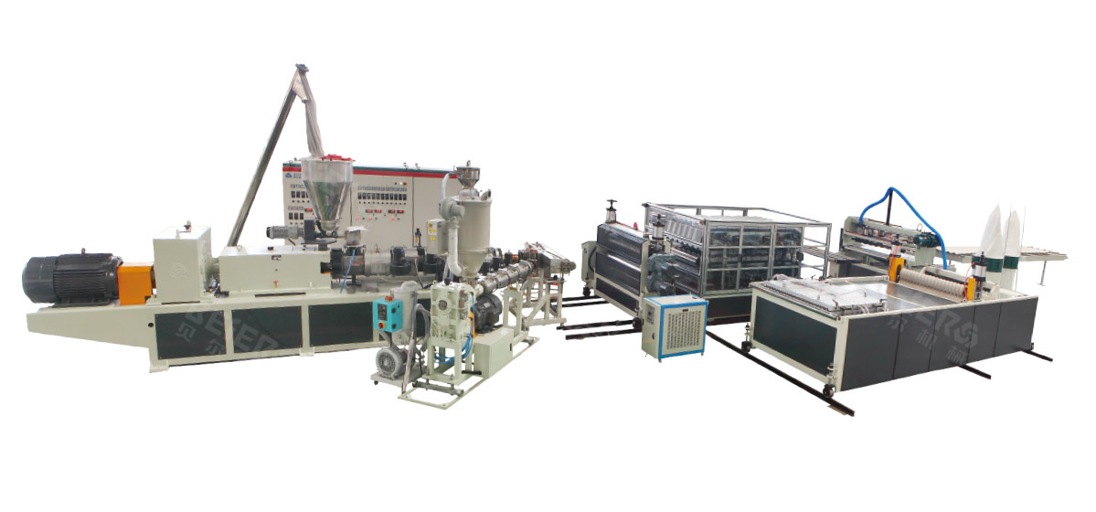 PVC層由SJZ80/156錐形雙螺桿擠出機生產(chǎn),ASA或者PMMA層由SJ50單螺桿共擠機擠出。