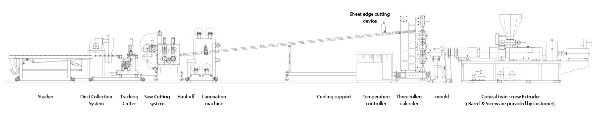 成型輥筒回路冷卻系統,配合模溫控制機精確控制壓棍輪溫度,使板材厚薄均勻。