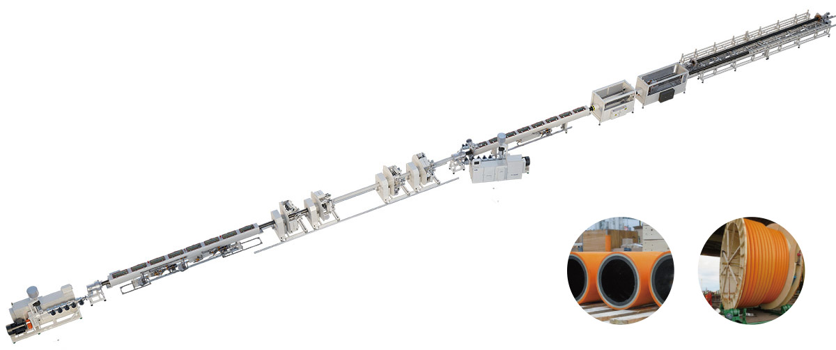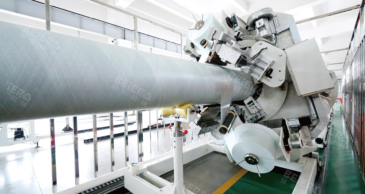 貝爾機械全自動連續式玻纖/碳纖纏繞增強塑料復合管擠出技術